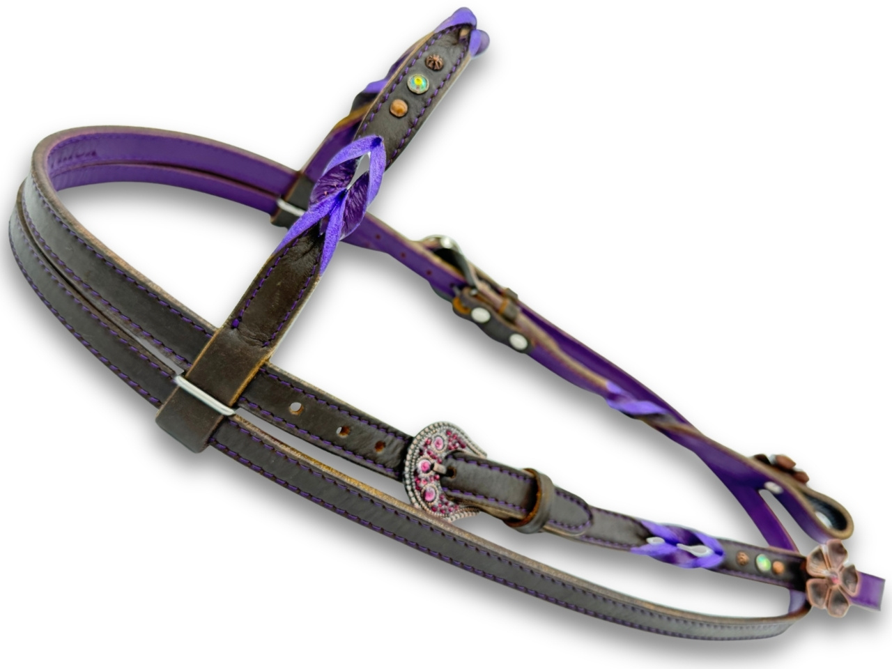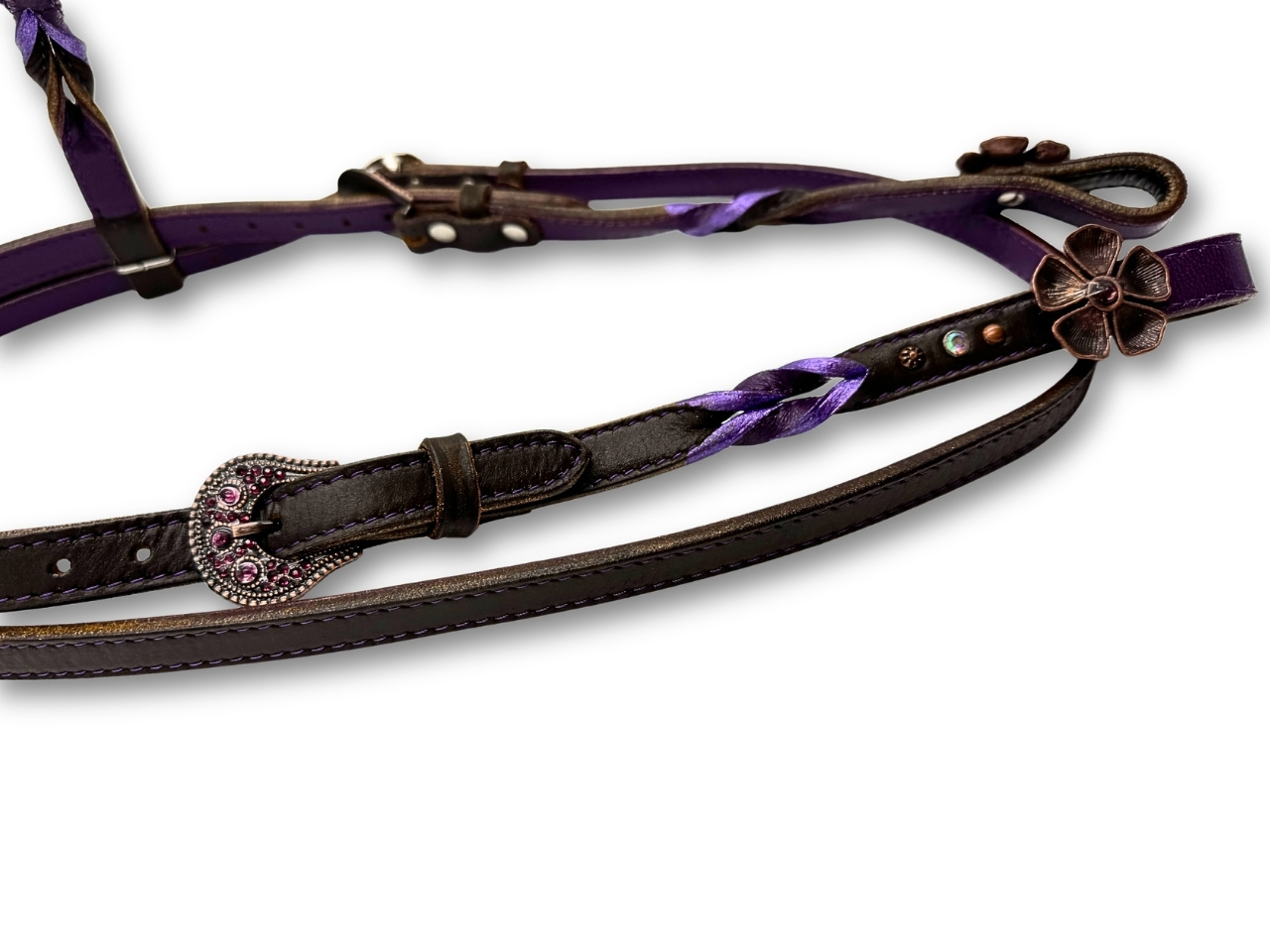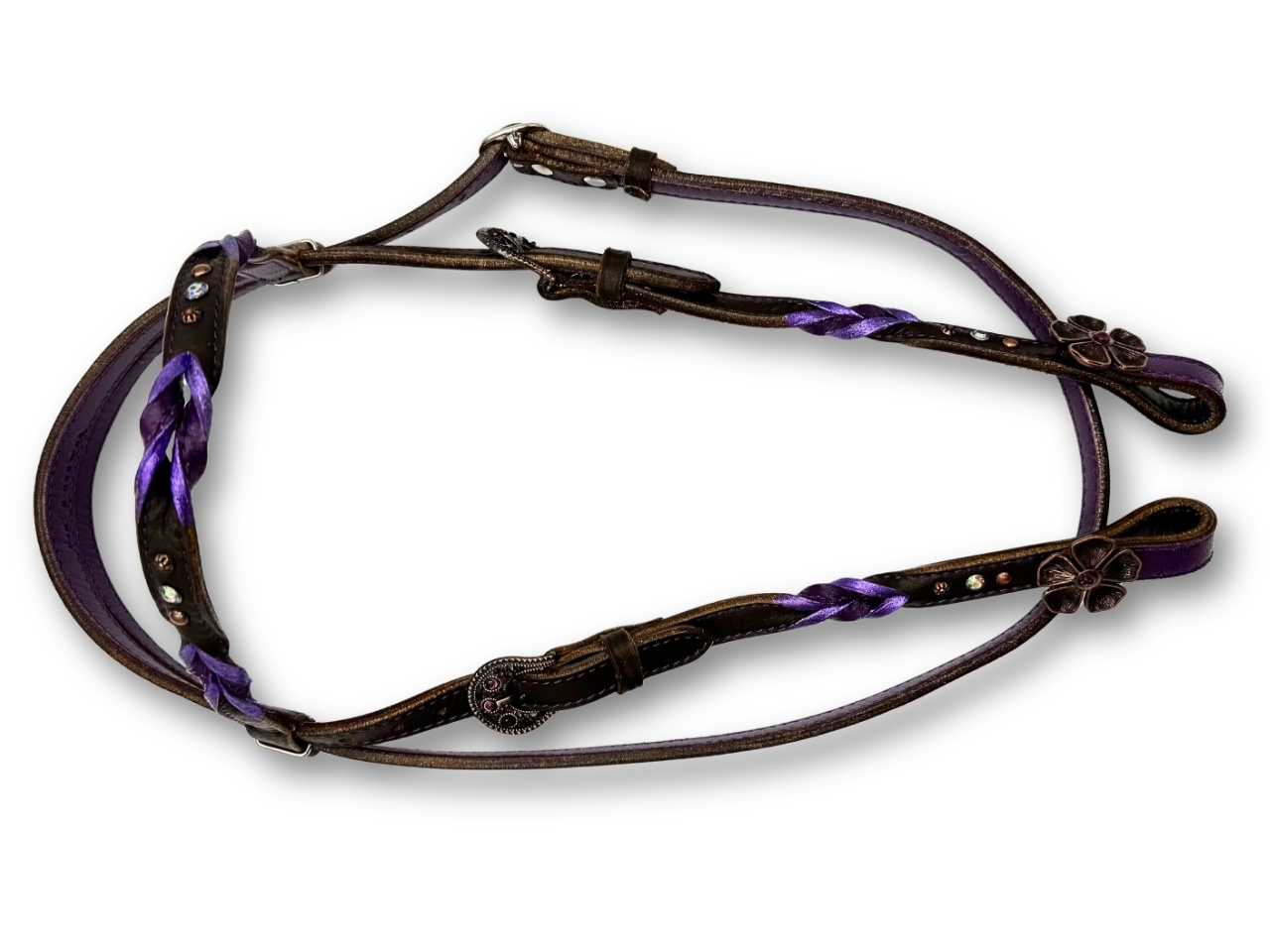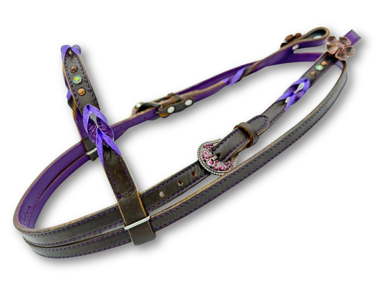 Add a splash of color to your training and attract everyone's attention - this western bridle in elegant dark brown and bright purple is an absolute must-have for anyone who loves extravagant style and quality!